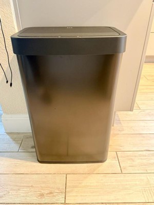 [This review was collected as part of a promotion.] What a gorgeous trash can in black!! And it has everything I would want. It is motion activated to open as well as has a “Stay Open” touch button and then a close to manually shut the lid. It’s battery operated and easy to change. It comes with 12 of their 10.6-15.9 GAL bags which perfectly fit and stay in place with the liner ring. I have been using this for over a week and it has made my kitchen cooking so smooth.