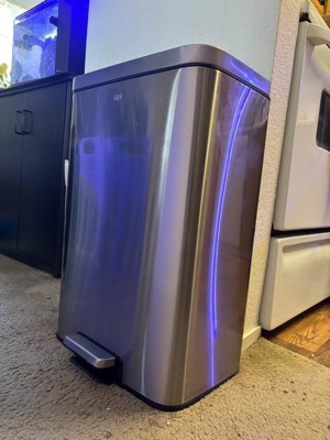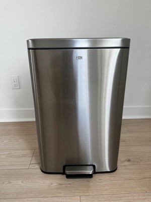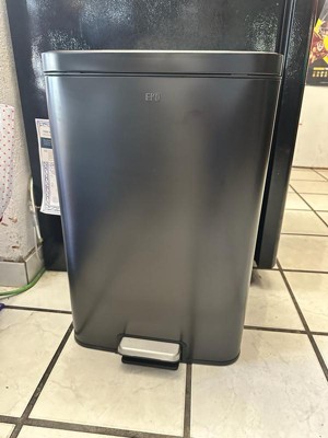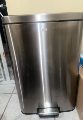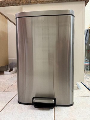 [This review was collected as part of a promotion.] I’m very impressed with the EKO Maxwell trash can. The Stanley still finished is Beautiful and actually resist the fingerprints. Which is a huge plus. it has a Slim rectangle shape. perfect Perfectly agains my cabinets. Without taking too much space. The soft close lid is a nice touch.no more loud loud slamming in the middle of the kitchen.it is sturdy and stylish. The foot pedal is very good high quality.worth the investment.13.2 gallon bin. easy and fast to assemble. safe for pets.great and high quality.