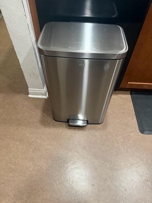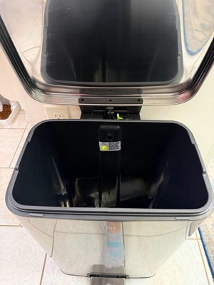 [This review was collected as part of a promotion.] This trash can is great! It sits even on the flooring, the liner is easy to pull out to replace the bag, and the step-to-open is so convenient. The stainless look is perfect for any decor. The liner makes it so easy to switch out the bag inside. It’s a little hard to push down but the can itself is heavy which is great for stability. I definitely recommend it.