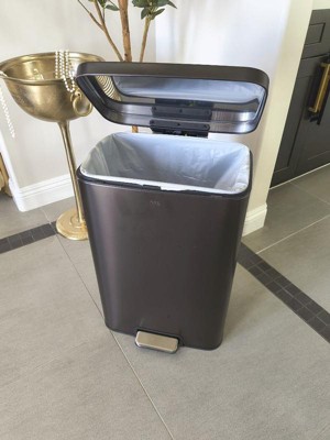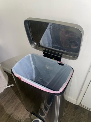 [This review was collected as part of a promotion.] I really like this trashcan. It’s super sleek and looks expensive. It’s very well-made and I especially appreciate the soft close. My only complaint with it would be that the inner plastic section where the liners go suctions into the can, and it can be hard to remove it to empty the trashcan when it gets full. It’s only slightly inconvenient for taking the trash out and loading the can liner back in. However, it’s such a small flaw that it does not detract from the overall experience of the can.