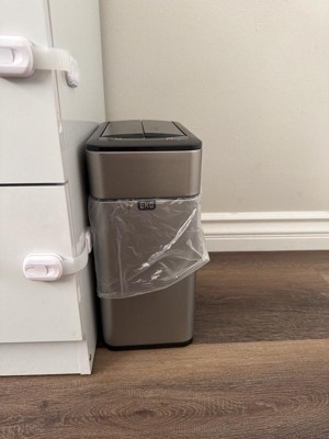 [This review was collected as part of a promotion.] This trash is the perfect bathroom size. It looks great and I love the motion aspect of it. The only slight issue would be that the sensor will only work if your an inch above it, so that’s a bit of drag but other than that I love it. The bags are of good quality as well and so far so fingerprints