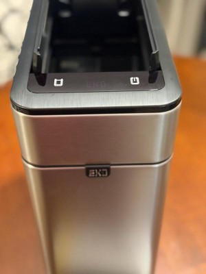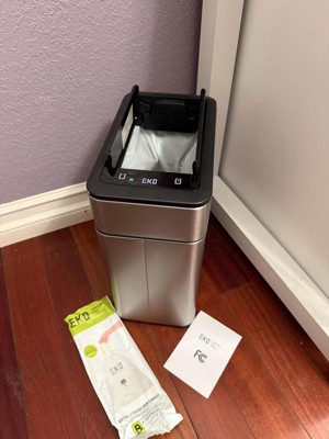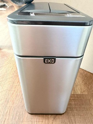 [This review was collected as part of a promotion.] Thank you @infuenster for giving me the EKO Phantom Sensor Bin SS 10 for my honest evaluation of the product. It arrived packed securely and I unwrapped to reveal an unblemished trash can. There were no chemical or rubbery smells. It was easy to get started, simply put in AA batteries and put on a supplied liner. The trash can is pretty small, very light weight and made of a light metal canister with plastic lid. Upon using it, I find it to be a touch slow in operation and the lid is not very sturdy. I’m not sure yet how long the battery power will last but I’ve had it a week and use it 2 or 3 times a day. I think the product is good for a low use area and I appreciate the opportunity to own it.