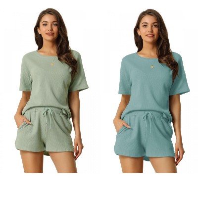 Ekouaer Pajamas 2 Piece Lounge Sets Ribbed Knit Matching Outfits T-shirt Biker Shorts Sleepwear Loungewear Sweatsuits - 1 of 4