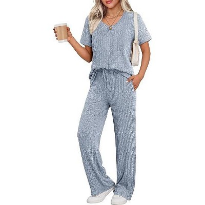 Ekouaer Sweatsuits Womens Loungewear Set Tracksuit Long Sleeve Pajamas Set with Pockets 2 Piece Outfits Lounge Sets Blue L