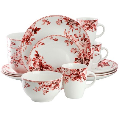 Elama Traditional Rose 16 Piece Stoneware Dinnerware Set