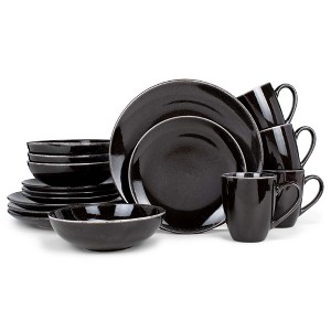 Elanze Designs Reactive Ceramic Dinnerware 16 Piece Set - Service for 4, Black