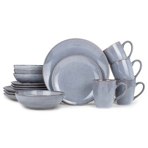 CASUAL BEAUTY - Dinnerware set is effortlessly beautiful; Freeform rims and glaze finish bring artisanal warmth to your everyday family dining16 PIECE SET - Each service includes 1 dinner plate, 1 salad plate, 1 bowl, and 1 mug; Dinner plate measures approximately 10.5 inches in diameter, Salad plate measures approximately 8 inches in diameter, Bowl measures approximately 6.25 inches across and holds approximately 18 fluid ounces, Mug holds approximately 14 fluid ouncesREACTIVE GLAZE FINISH - Made of ceramic stoneware with reactive glaze finish and comtemporary look with rustic styleEASY TO CLEAN - Dishes coordinate with many kitchen spaces and open shelf organization; Dishwasher and microwave safeGREAT GIFT or SELF PURCHASE - Contained in protective packaging; Ready to be gifted or added to your daily dishes at home; We are about our customers, please reach out to us if there is any problem with your order
