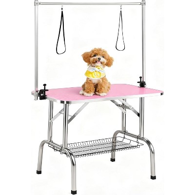 Electric Hydraulic Lift Pet Dog Grooming Table, 24 Inch Rotating Grooming Desktop for Small Pet, with Overhead Arm, Foot Remote, Tool Organizer