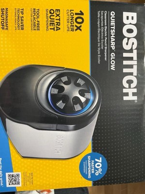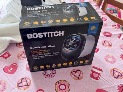 [This review was collected as part of a promotion.] The Bostitch QuietSharp Glow pencil sharpener is a game-changer for any workspace or classroom. With six adjustable levels, it ensures the perfect sharpening every time, catering to various pencil types and preferences. The auto sharpener stop feature prevents over-sharpening, preserving pencil longevity. Its tool-free replaceable cutter edge makes maintenance a breeze, ensuring long-term durability. The addition of rubber suckers ensures a stable grip on any surface, enhancing user experience. Compatible with tri-write pencils, it's versatile and efficient. Overall, the Bostitch QuietSharp Glow combines innovation and functionality, making it a must-have for any classroom or office space.