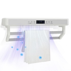 - 【Energy Efficient】The Wall Mounted Towel Rack features an Energy-Saving design. Its timing function allows precise control of the drying and air purification duration, you can set the time from 1 to 4 hours. The rack can swiftly reach a temperature of 130℉ and maintains a constant temperature. Minimizes prolonged heating, saving on energy costs and reducing electricity expenses.