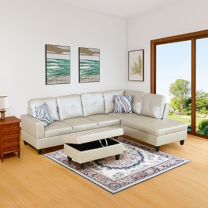 - Modern Design: This beige leather sectional sofa boasts a contemporary design that seamlessly blends into any living room setting, creating a harmonious balance between style and functionality.