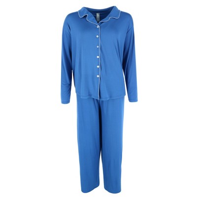 This pajama set is super soft and stretchy for maximum comfort. The neckline has a faux henley two button-down detail. The top is long sleeve with open bottom pants. The pants have an elastic waistband with a decorative bow. This set is lightweight and great for layering. The floral pattern adds a feminine touch. This would make a really nice gift. Made of 95% Polyester 5% Spandex