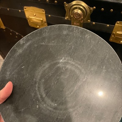 Scratched and the base was threaded and bored incorrectly so it couldn’t even be screwed in! I ordered 2 - one the marble top was all scratched and the other had huge circular stains