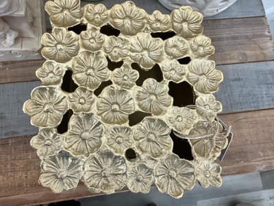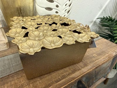 Elegant Floral Decorative Box with Lid for Home Decor - Stylish Flower Cut Out Metal Design Perfect for Keepsake and Storage - 4", Gold