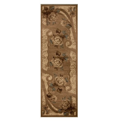 Elegant Floral Medallion Indoor Hallway Entryway Runner Rug, 2' 6" x 8', Oatmeal - Blue Nile Mills