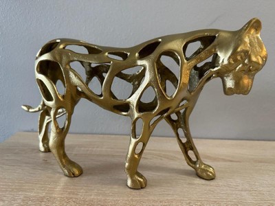 Elegant Metal Lioness Sculpture for Home or Bathroom Decor - Figurine for Office, Room, Living Room, Shelf Display or Coffee Table Decor - 8", Gold