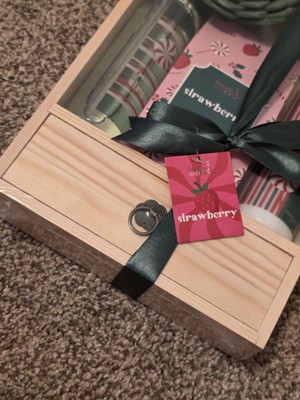 Beautiful box with nice bath and body items in strawberry scent.