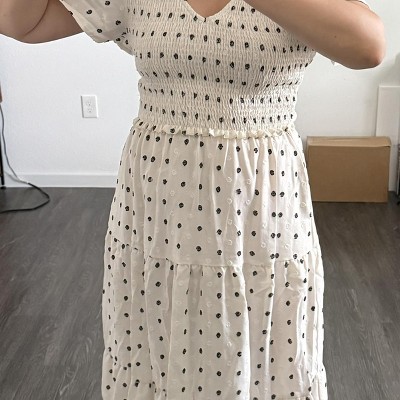 Very summer dress withs smokey textured. Loved the small detailing all over dress. Fits perfectly.