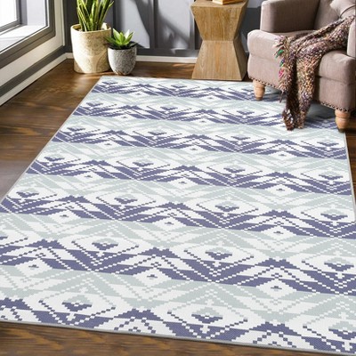 COZONY 8' x 10' Elegant Floral Washable Area Rug, Thin Low Pile Non Slip Carpet with Stain Resistant Backing, Soft Durable Indoor Rug, Beige