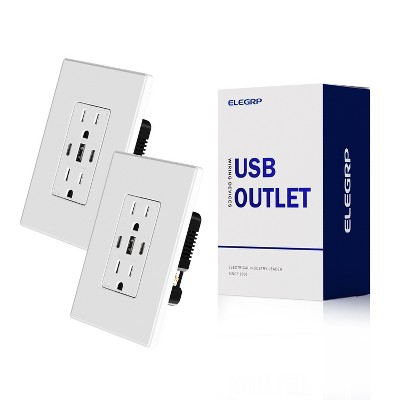 ELEGRP USB Outlet Receptacle, 20 Amp Outlet with USB C and USB A Port,21W Duplex Tamper Resistant Wall Outlet, w/screw Wall Plate, UL Listed, White