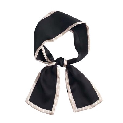 INSPIRE CHIC Women's Contrast Silk Like Oblong Neck Scarves 38.6"x3.5" 1Pc Black