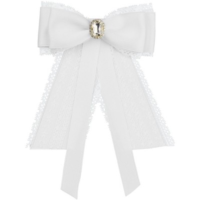 INSPIRE CHIC Women's Rhinestone Ribbon Brooch Pre-Tied Bow Tie 1 Pc One Size Camel