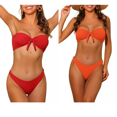 Elerevyo Women's Chain Linked Detail Textured Tie Side Triangle Thong Bottom Swimwear Bathing Suits 2 Sets - 1 of 4