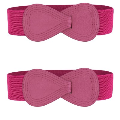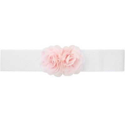 INSPIRE CHIC Women's Elastic Wide Double-Flower Stretch Corset Waist Belt 1 Pc Light Pink