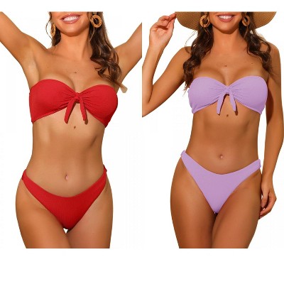 Specification:1. Material: 82% polyester, 18% elastane.2. Color: Light Green & Light Pink, Black, Purple, Hot Pink, White.3. Size: XS, S, M, L, XL.4. About Padding Cups: With removable padded cups.5. About Underwire Type: No steel ring.6. Package Contents: 2 * Bikini Sets.7. Cleaning Method: Machine wash cold, gentle with like colors. Non-chlorine bleach. When needed, tumble dry low, remove promptly. Iron low.