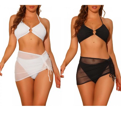 Elerevyo Women's Halter Ring Textured Solid Color Cover Up Mesh Skirt Bikini Bathing Suits 2 Sets - 1 of 4
