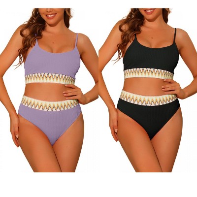 Elerevyo Women's Halter Ring Textured Solid Color Cover Up Mesh Skirt Bikini Bathing Suits 2 Sets Black, Purple X-Large