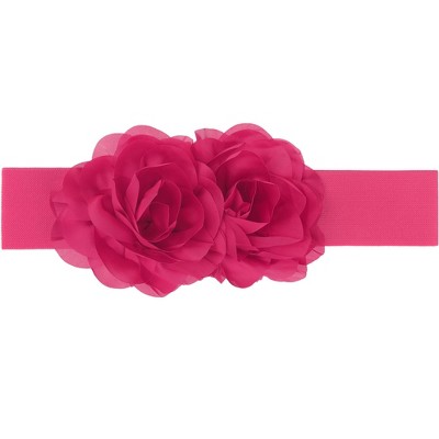 INSPIRE CHIC Women's Large Chiffon Rose Double-Flower Elastic Stretch Wide Corset Waist Belt 1 Pc Hot Pink