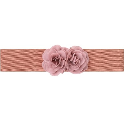 INSPIRE CHIC Women's Large Chiffon Rose Double-Flower Elastic Stretch Wide Corset Waist Belt 1 Pc Light Pink