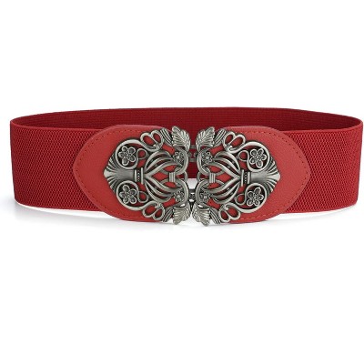 INSPIRE CHIC Women's Large Chiffon Rose Double-Flower Elastic Stretch Wide Corset Waist Belt 1 Pc Red