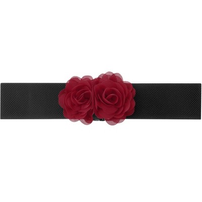 INSPIRE CHIC Women's Large Chiffon Rose Double-Flower Elastic Stretch Wide Corset Waist Belt 1 Pc Black