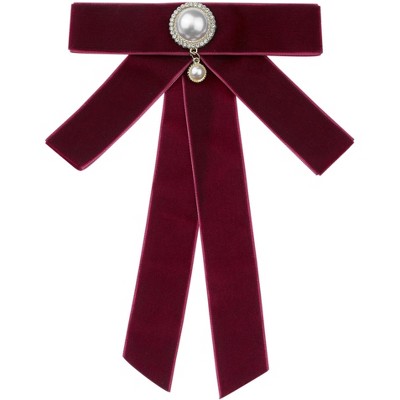 Elerevyo Women's Pre-Tied Ribbon Elegant Brooch Pin Bow Tie Rose Red