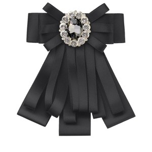 This brooch tie is a pre-tied ribbon bow tie with handmade rhinestones.