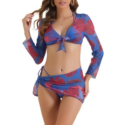 • 3 pieces including bikini top, bottom, and sarong skirt