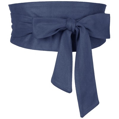 Elerevyo Women's Satin Obi Self-Tie Wrap Wide Sash Waistband Belt 1Pc 58-78cm/22.83-41.73" Navy Blue