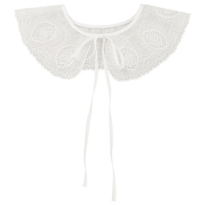 INSPIRE CHIC Women's Semi-Sheer Embroidery Neck Ruff Detachable Fake Dickey Collar Little Shawl 1 Pc One Size White-3