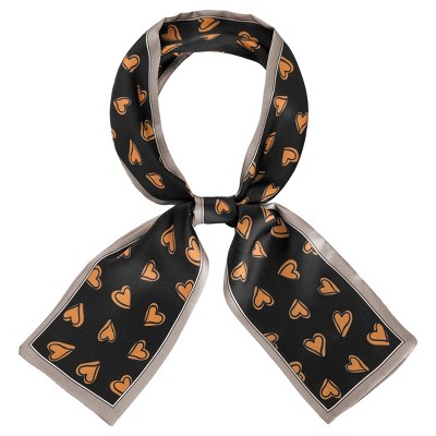 INSPIRE CHIC Women's Solid Contrast Color Pleated Long Satin Neck Scarves 49.2"x4.3" 1 Pc Black Grey