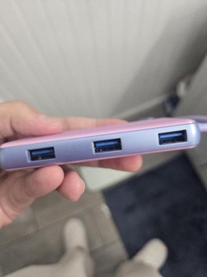 This USB-C to multiple inputs USB hub is very useful when you want to connect more than one device to a computer. It has three USB-A ports, an HDMI K4 port, and a USB-C port, although this port is not a charge output. The compact size means it does not take up very much space at all, and it has a nice, sleek design. I find that the charging time is really quite fast and the hub is great at handling both USB-C and USB-A devices which is perfect when you have a family that uses different types of electronics. Great little hub.