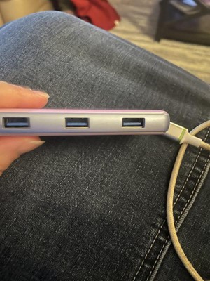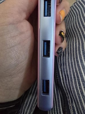 I like that it is easy to plug my cords to this USB hub and charge a few phones all at one time. I like the color of this. I like that it is slim and it fits in my purse easy and I can travel with it.