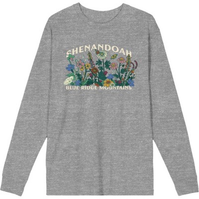 • CUSTOM DESIGN: Make a statement with this custom designed apparel, showcasing various wildflowers and white letters that read, "Shenandoah Blue Ridge Mountains," a perfect piece for nature enthusiasts.