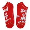 Add festive cheer to your sock collection with this 5-pair pack of women's Elf ankle socks. Featuring Buddy the Elf, the iconic "Son of a Nutcracker" text, and a vibrant green and red color scheme, these socks are perfect for the holidays. Made with a durable blend of 98% polyester and 2% spandex, they offer comfort and stretch. Machine wash them on cold with like colors and tumble dry on low heat for simple care. Do not bleach.