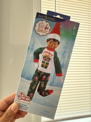 [This review was collected as part of a promotion.] These clothes are so cute for the elf. It has Velcro so that you can put it on the elf easier. Love the print. The box it comes in is super big for the items inside. The packaging for it could be better.