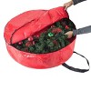 - This woven polypropylene wreath storage bag protects Christmas decor against dust, insects, and moisture to keep decorations looking their best year after year