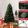 • Our artificial Christmas tree arrives pre-strung with 250 LED lights, and the included remote lets you change between 11 functions without getting up