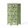 Featuring a sunburst cut out design, this iron table is both light weight and stylish.