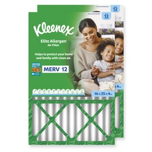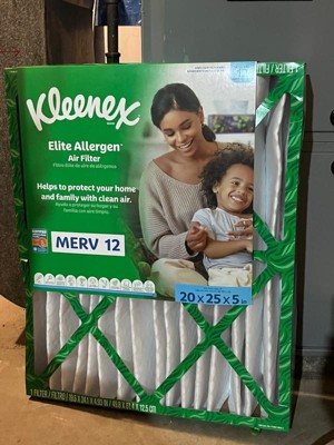 Kleenex Elite Allergen Air Filters Merv 12 (2 Pack) help capture hard to see microparticles including lint, dust, mold spores, smog, pollen, pet dander, smoke, cough/sneeze debris, airborne bacteria, and particles that can carry viruses. Our MERV 12 rated air filter is electrostatically charged to trap particles with patented Dual Air Flow technology. Certified Asthma & Allergy Friendly®. Protect your home and family.